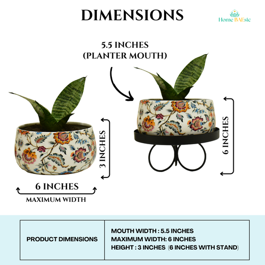 Garnet Floral Indoor Metal Planter With Metal Stand | Home & Garden | 5 Inches